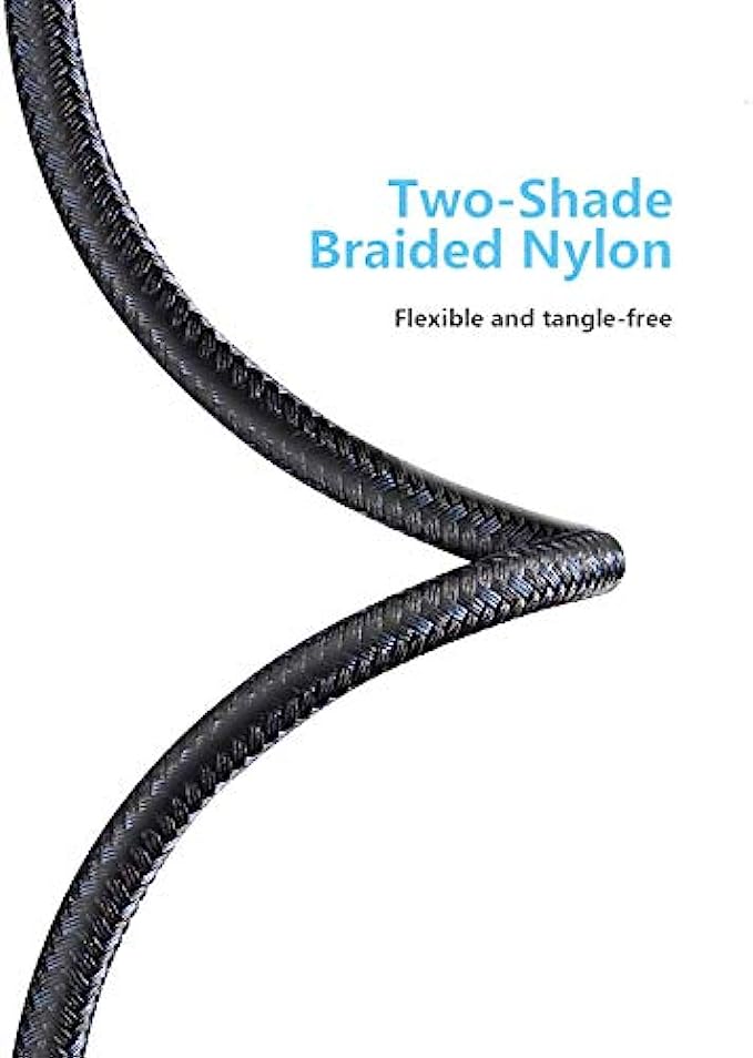 Nylon Braided: Flexible charging cable has high-quality double Nylon braided jacket and core material. Compact aluminum alloy shell adds more protection to both and usb-A connectors, allows 40000 plus bending and repeated unplugging.