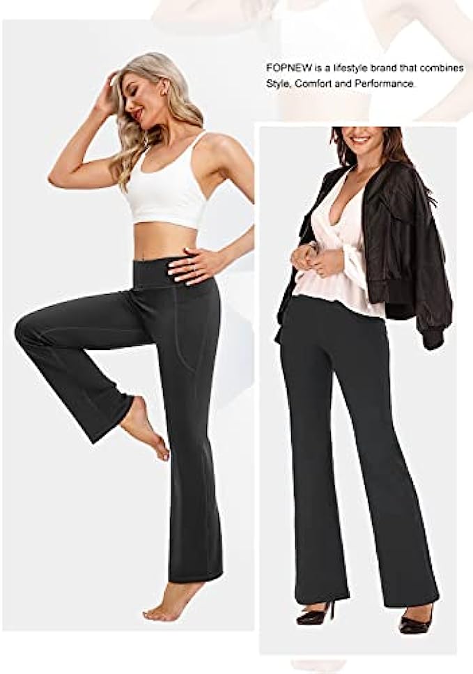 FOPNEW Bootcut Yoga Pants for Women with Pockets High Waisted Workout Pants for Women Bootleg Work Pants Dress Pants