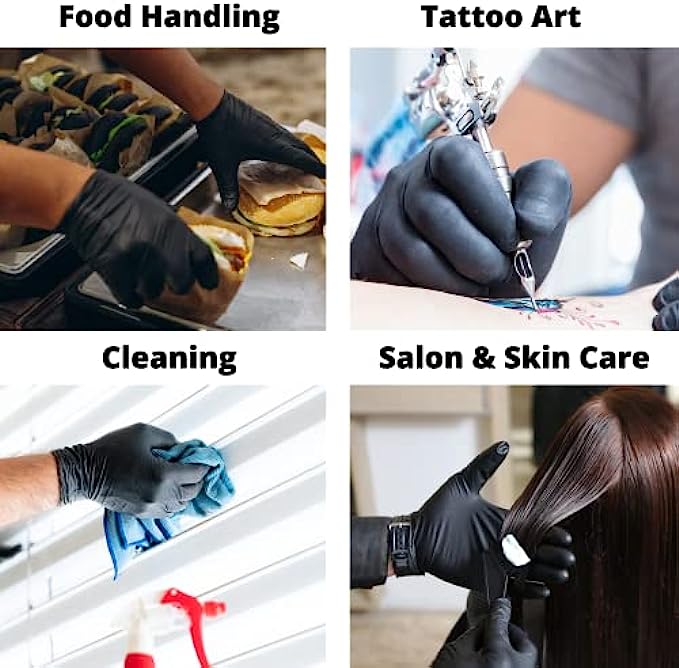 Imported ?DURABLE MATERIAL: MagiCare's tear-resistant Black Gloves are made from a strong, highly stretchable nitrile material - the best option for tear and puncture resistance. ?NON-SLIP GRIP: Allows for fine control and grip when precision is needed for lab work, first-aid, hair & skin care, tattoo design, arts & crafts, pet care, food prep, and beyond! ?FOOD SAFE: These food safe gloves are ideal for food prep and handling fruits, veggies, meat, etc. MagiCare’s Nitrile Gloves are also a great option for cleaning, at work, around the house, and much more! ?ALLERGEN-FREE: Powder and latex free for individuals with sensitive skin and allergies to natural rubber latex. ✔️4 MIL THICKNESS: Ideal thickness to not only offer all day comfort and control but have the strength to withstand heavy duty activity.